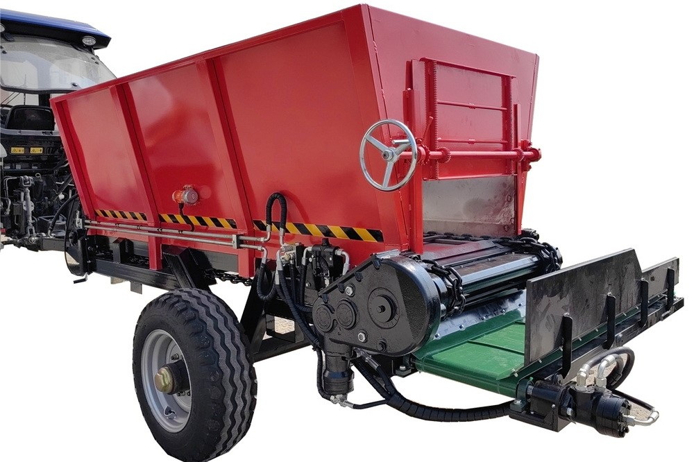 多功能撒糞機可以對禽畜固體糞便有機肥、酒糟、糖渣、花生殼、稻殼、木糞、石灰、化肥、微肥等固體物料進行開溝深施、單雙側拋撒、定向輸送等田間作業(yè)??筛鶕?jù)農藝要求附加大化肥及微量元素肥料箱,實現(xiàn)多種物料混合使用,有效解決了施肥成本高、推廣面廣、肥料浪費嚴重、有機肥難以還田的問題。