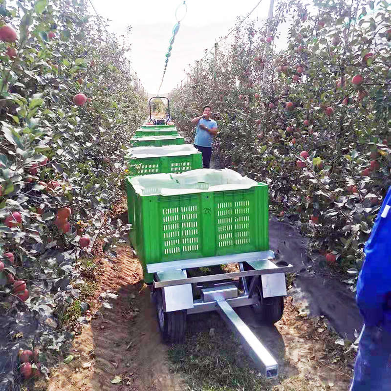 除了先進的種植技術,我們的管理模式也同樣現(xiàn)代化。秋收季節(jié)我們的果箱拖車和果園自卸載升降叉車不僅提高了運輸效率,也減少了對果實的損傷。
